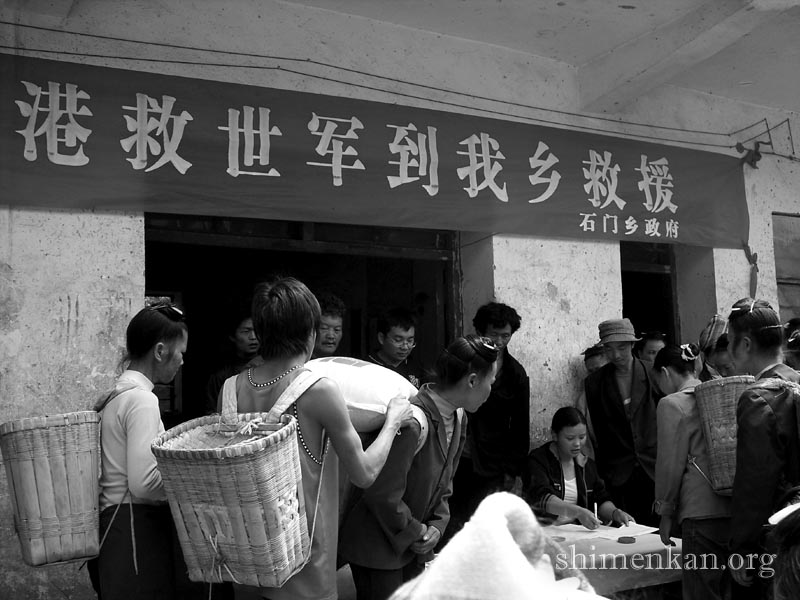 7月14日,下午3点钟在石门乡政府会议室,乡长王才军,志愿者管毓红、张礼昆、文荣建、吴天慧、张建芬,原乐施会七个社区管委会成员共19人会议。会议特别说明赈灾物资来源单位是香港救世军。项目是与乡政府合作。救世军的项目与大家做过的乐施会的项目一样,要做的实在。乡长致辞特别说到政府工作太忙,抽不出人员,感谢大家的参与。