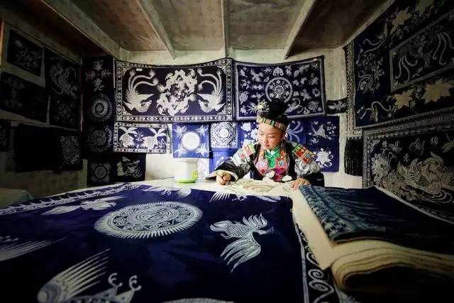 蜡染,是中国古老的民间传统纺织印染手工艺,勤劳善良的苗族同胞擅长把优秀的历史文化“刻录”在一幅幅叫做“ 蜡染”的画布上,并把它用来做衣服、家居装饰品、艺术展览品等。蜡染的纹样,传达着苗族文化的文化元素。苗族蜡染刺绣具有很高的艺术价值和经济价值。
