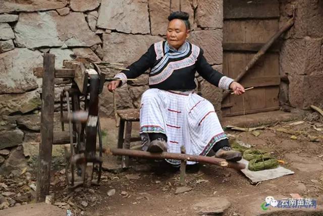 苗族服饰之服饰代表性传承人刘忠英在纺麻(杨志坤摄)