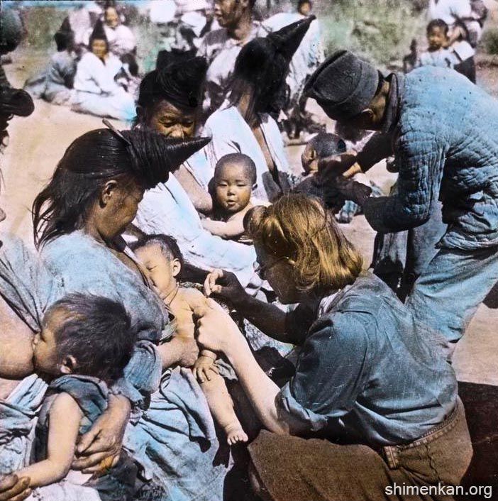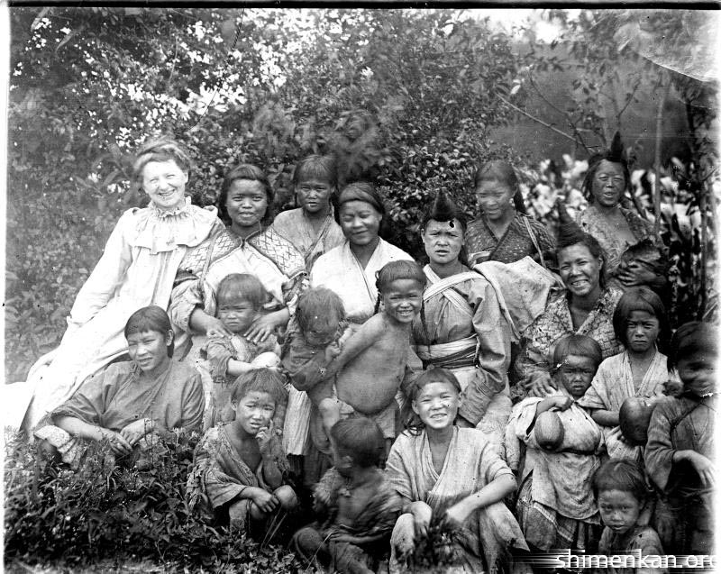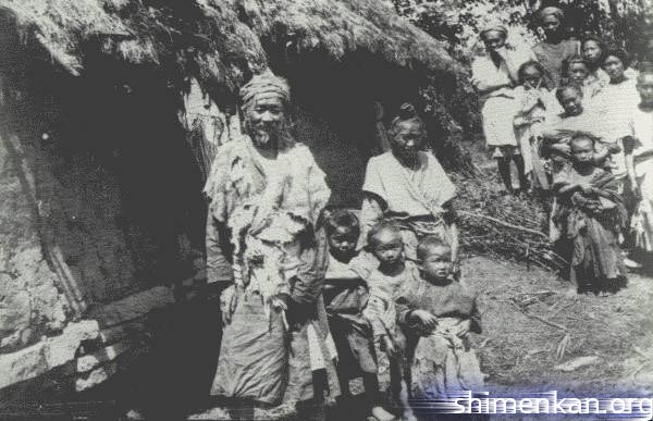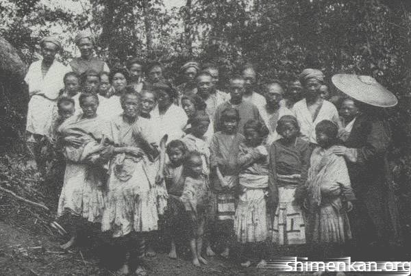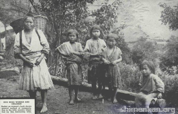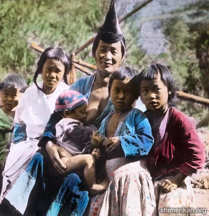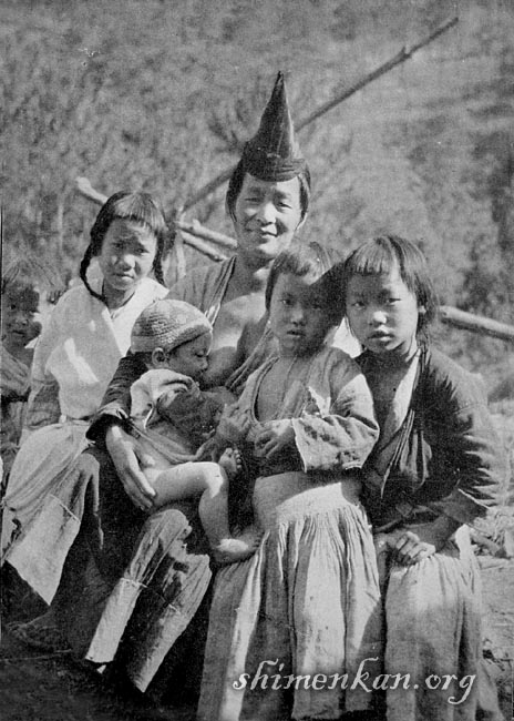 百年前的一位苗家母亲和她的孩子们。角形的发式是已婚妇女的象征,它将一直保持到去世。