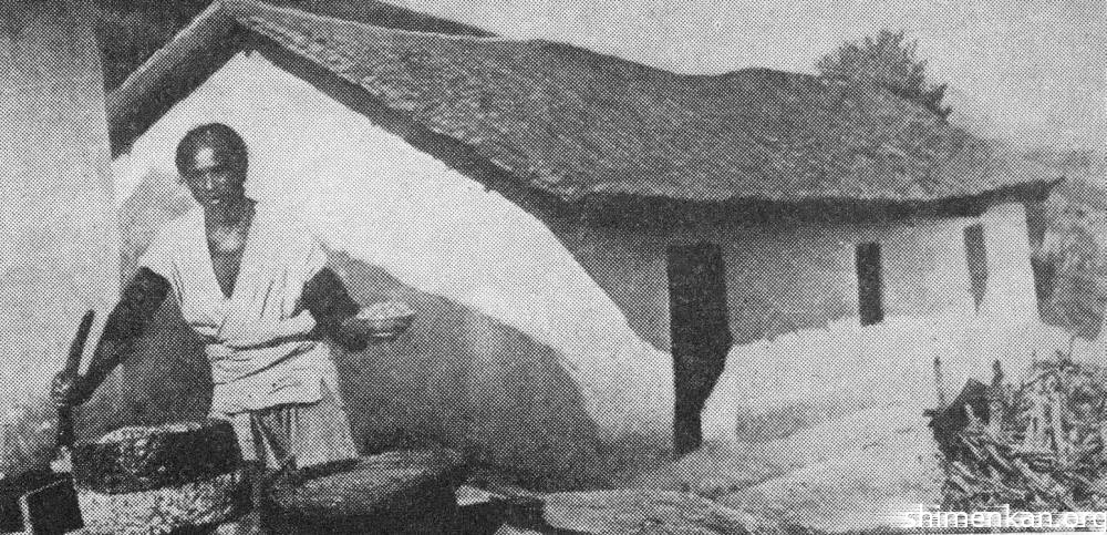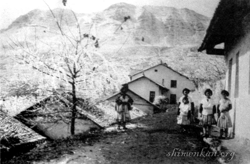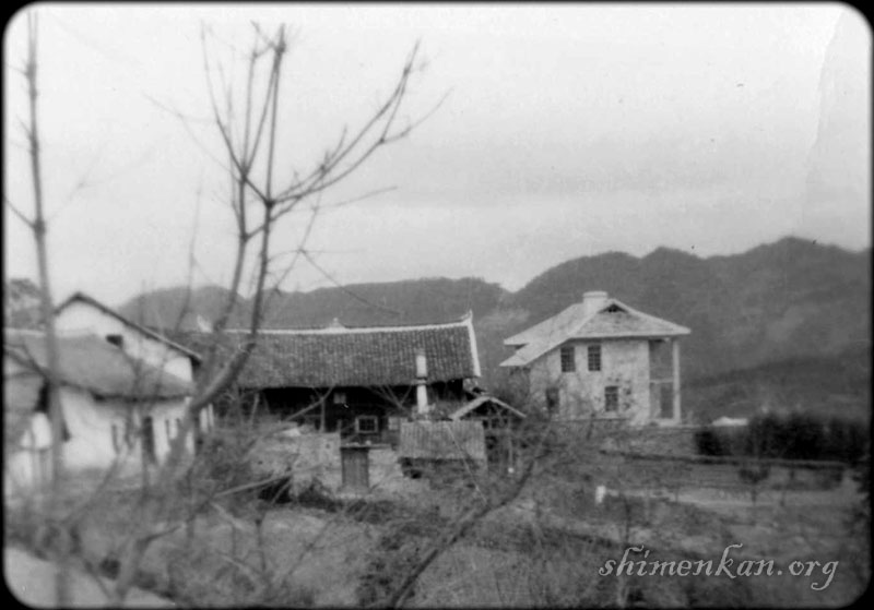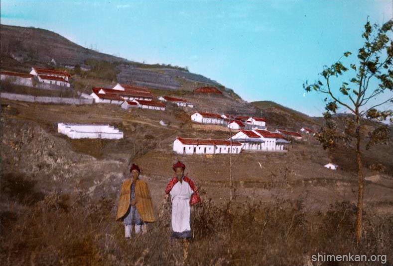 1928年的石门坎---学校、教堂和村庄。村庄掩映在最上部的树丛中,下方依次为教堂、学校、学生宿舍等。甘铎理牧师(Rev.R.Eendall)的女儿艾莉森.路易斯女士(Mrs.Alison Lewis)说:“张道惠牧师的家在左边的树木当中(位置较高的建筑)。那些都是张牧师种的水果树。引进的第一批土豆就种在房子下方的土地上。在这块土地上,前5年收获的小土豆都不让人吃,一直到有了足够的土豆种子给农民们去种植以收获土豆种子和土豆来过冬。”