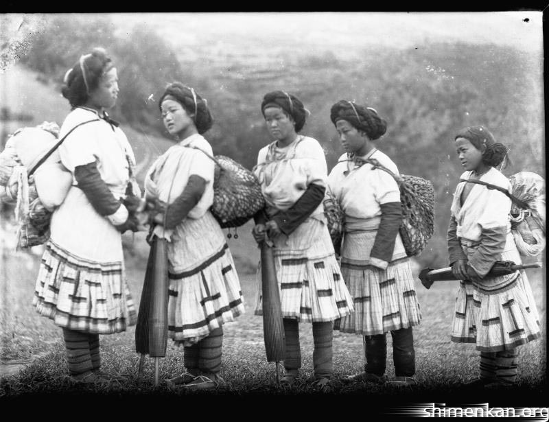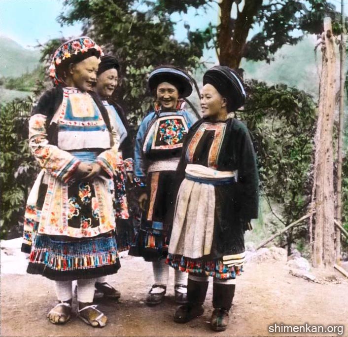 百年前的苗族姑娘和她们的服饰。最右边的姑娘在读《圣经》。