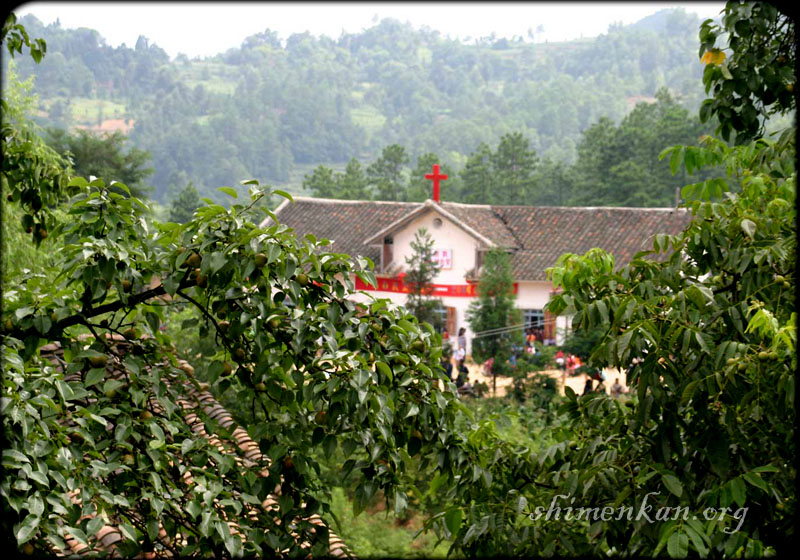 从东向西看去的石门坎,大山的后面是昭通。1905年石门坎全貌