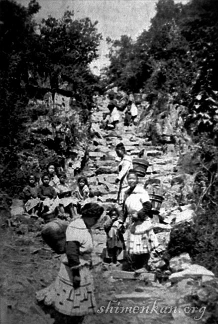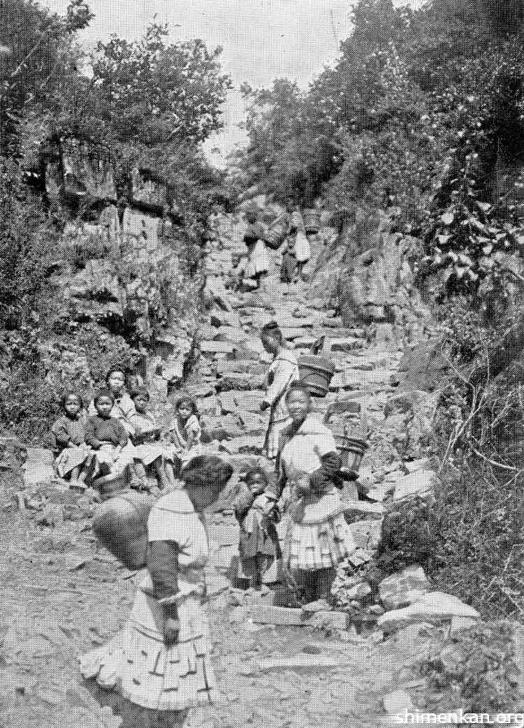 层层石阶有如一道窄窄的“石门”迈过它前面就是一片新的天地。这是1908年的石门坎 (Rev.harry parsons张道惠摄)