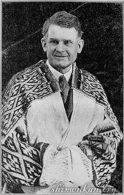 身着苗族服装的威廉·王树德牧师(Rev.William H.Hudspeth)。他是怀着对信徒的虔诚,对柏格理的仰慕,于1910年来到石门坎的。1915年石门坎流行伤寒,王树德受到感染后。在柏格理的救治和照料下得以康复,而柏格理却不幸被传染,于1915年9月16日病故。此后,王树德成为柏格理的继承人。著有《石门坎与花苗》