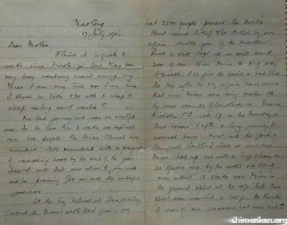 1904 年,不断有贵州苗族寻访者千里迢迢到云南昭通基督教教堂寻访“爱稣”,有时,“一天之中竟来了几百近千人”。这是由柏格理亲自摄下的一个场景