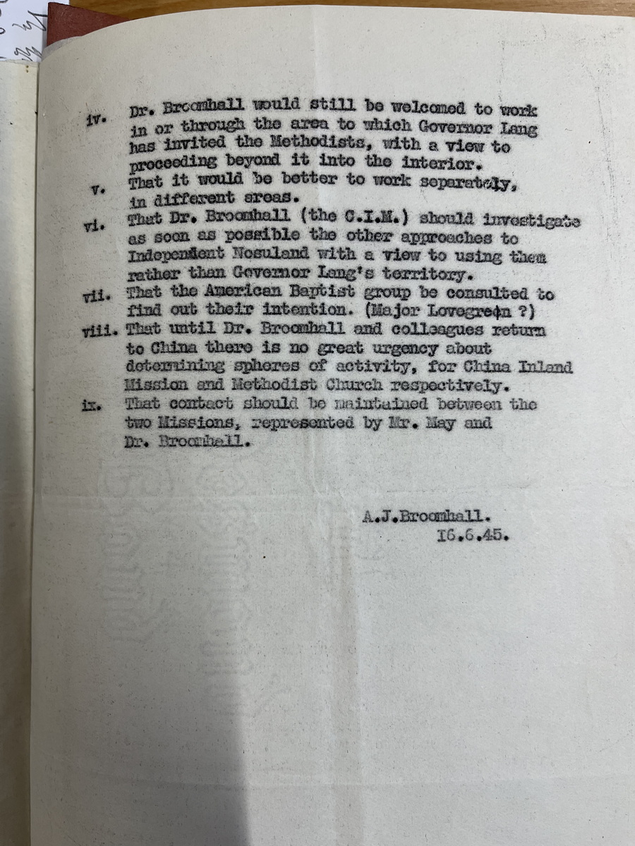 1949年8月甘铎理给总部西南解报告 1945年内地会和循道会诺苏分区会议纪要
