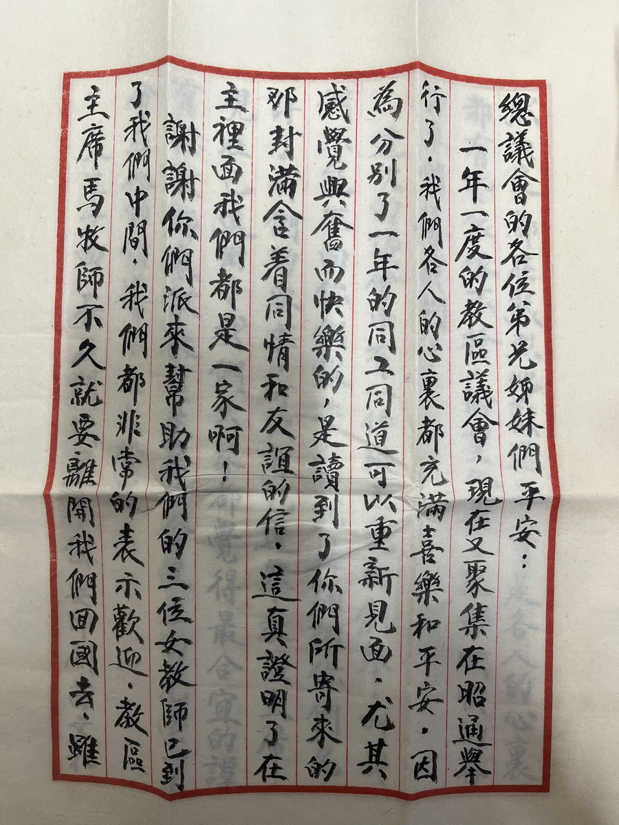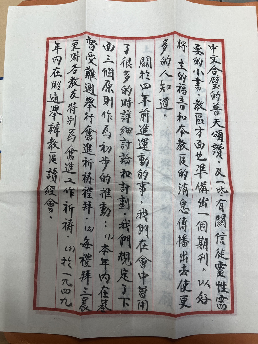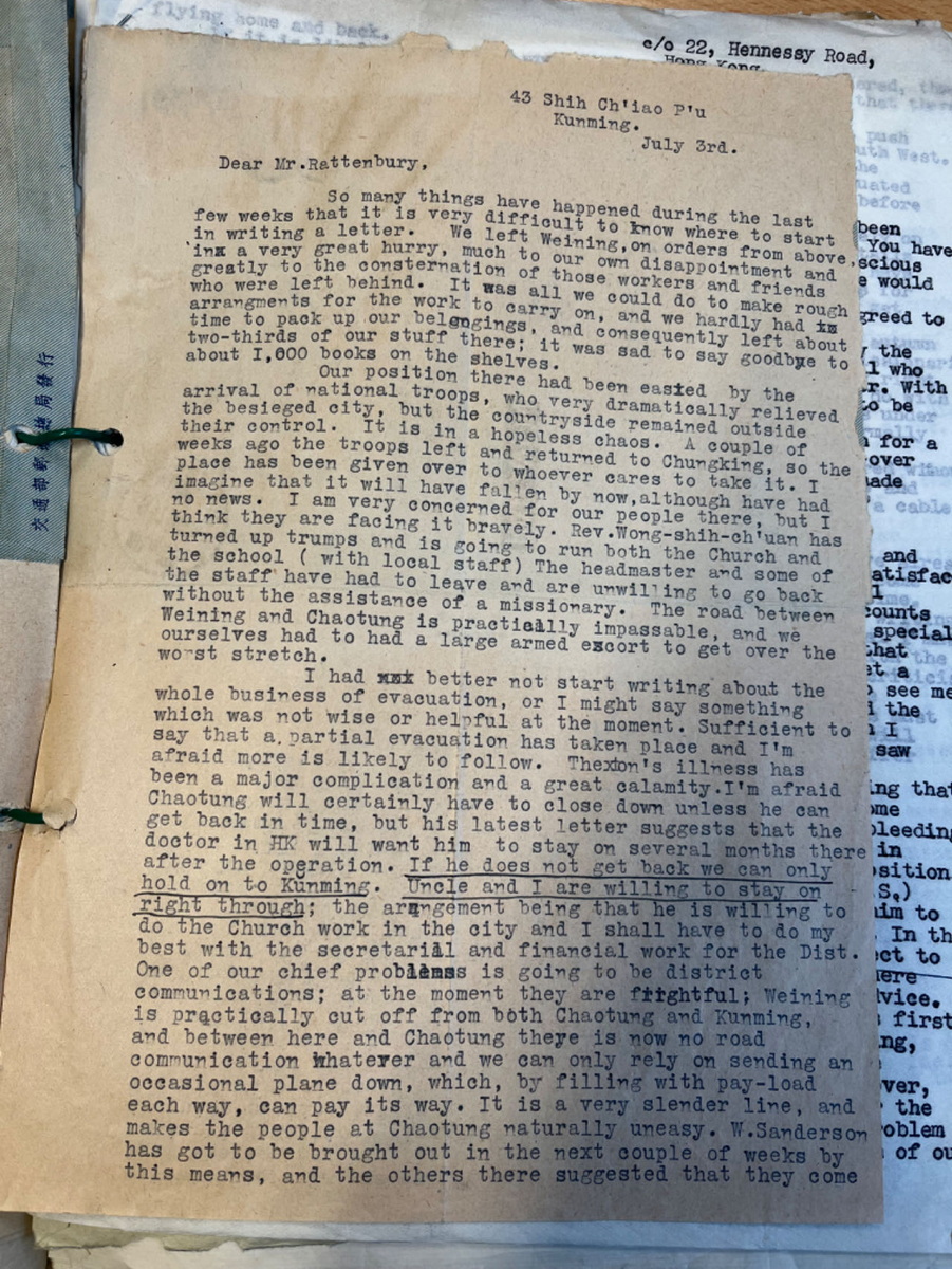 1948年石川联会给总会信选主席印书前进运动 1949年6月Thexton给总部昭通撤离及人员