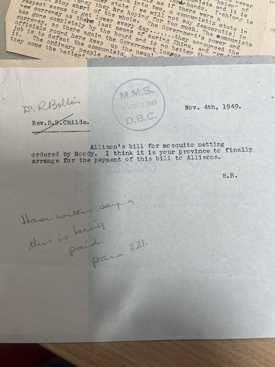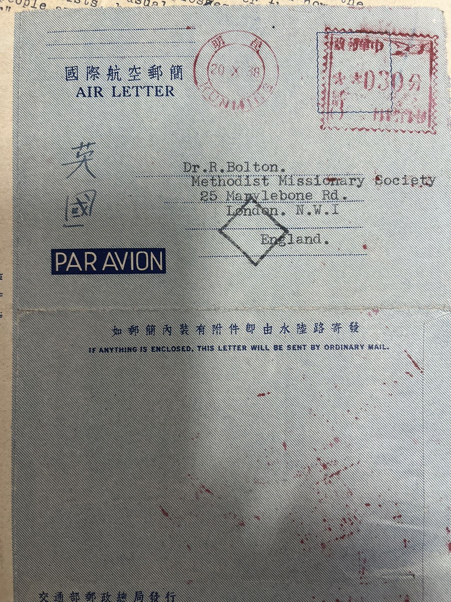 今天下午是第一天进SOAS特殊收藏阅读室。恭恭敬敬地接过一箱资料。是循道会西南教区1948-1951年的会议纪要和通信,主要是副本抄件。资料太乱放弃细看。只翻找原件。整理了三份原件信,一份会议纪要。还有两封中文手信,内容还未及看整理。